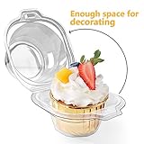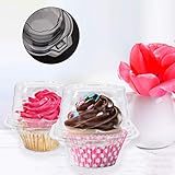 i-CHONY - Sturdy and durable domed lid designed single cupcake boxes is securely fastened when closed and can be resealed after openingRecommend securing with tape so container stays closed securely Ecofriendly material cupcake container is made of transparent pet plastic High standard production meets hygiene requirements and is 100 safe and reliable Plastic cups size base diameter 35 inch lid diameter 45 inch height 314 inch note does not include cake