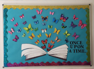 - Make bulletin boards: Butterfly themed classroom bulletin board - Learning Gives you Wings to Fly, made with these butterflies.