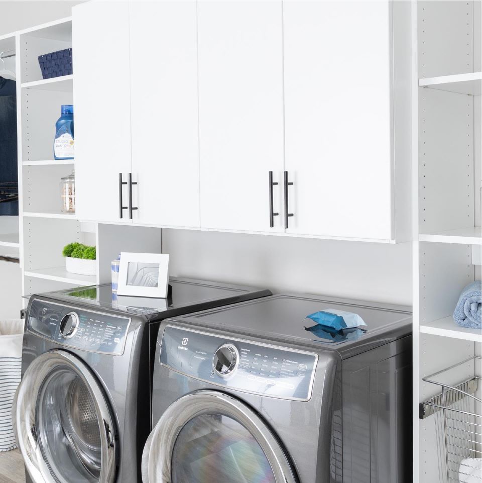 - Installing some high cabinets or shelving in the laundry room makes good sense for a couple of reasons: it keeps dangerous items out of reach of small hands and it keeps everything you need for cleaning your entire home ready and at hand. If you can, store your vacuum and/or floor steamer in the same space, as well as the accessories, extra bags and cleaners.
