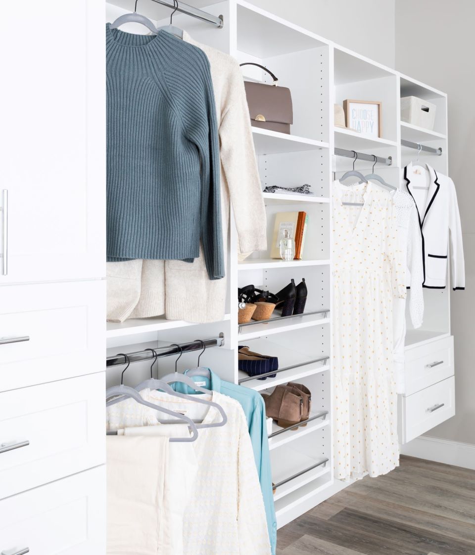 - Keeping things off the floor with hooks, shelves, drawers and rods ensures that everything in your closet is properly put away.