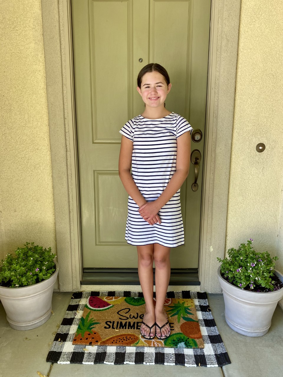 Last Friday was the last day of school which meant it was time to take the traditional photos by the front door. Just like the first day of school, the last day was also online from home.