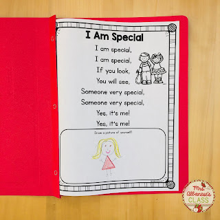 We choose a child to be the special "Child of the Day" where classmates ask questions to learn more about this person. Students can draw a picture of this friend in a blank notebook.