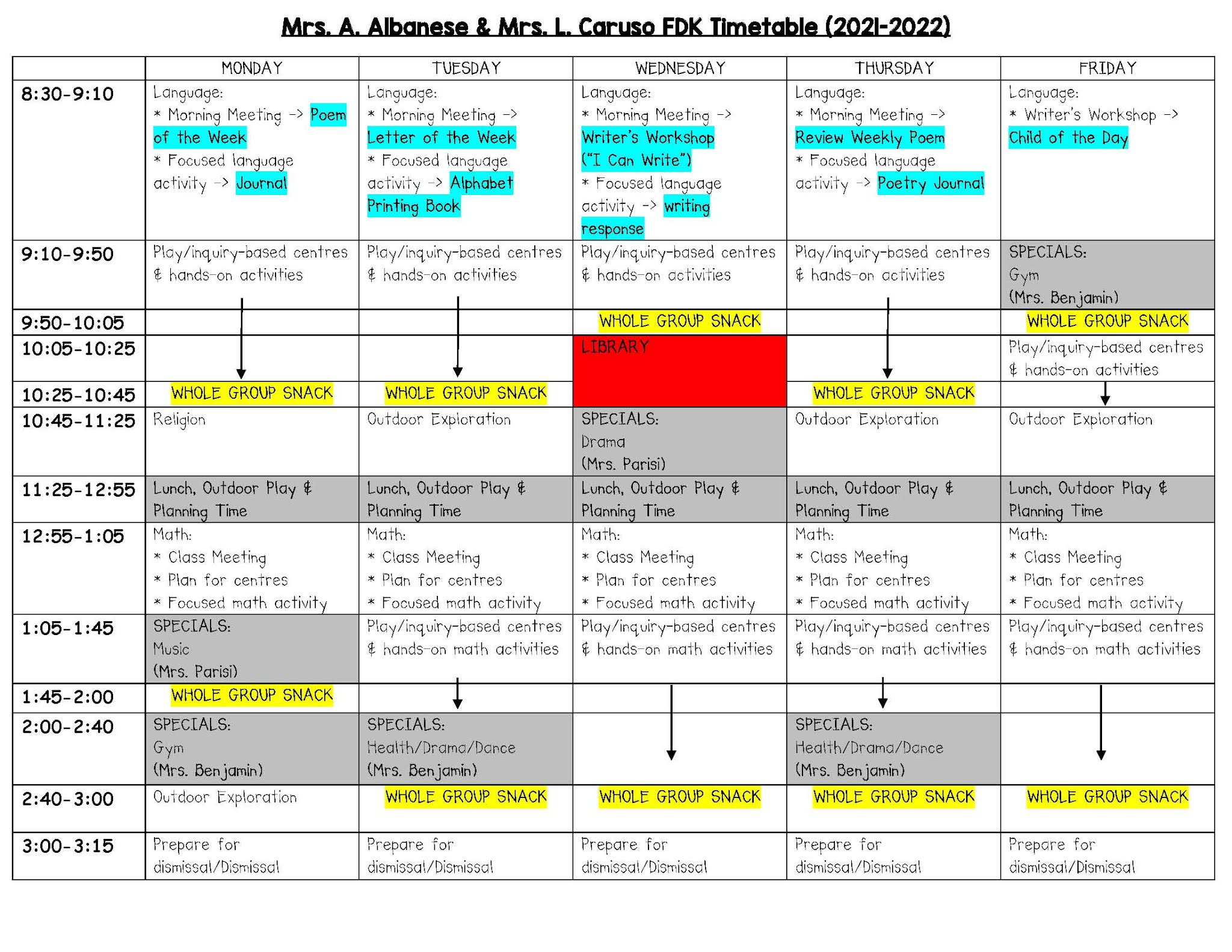 Keep in mind that it still may change (early in the year to finalize everything) but this is how we planned out our week.
