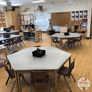 It's the first month of school! That means new students, new routines, new everything! I love this time of year....yes, it may be the most stressful but it's also a time of fresh beginnings. We start the year slowly, thinking about how to set up our classroom so that students are able to independently navigate and explore. This year, Covid restrictions are still in place, so students will be sitting, once again, in "Friendship Pods". Here's a peek into our room!
