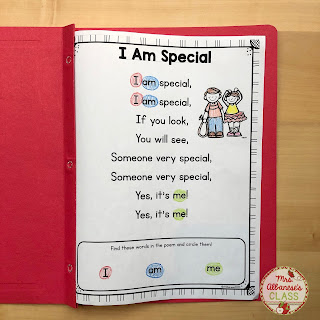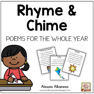 We review the weekly poem (see Monday) and have fun saying/chanting it in different voices. I place these cards in a tin can and have students choose one. They LOVE this!