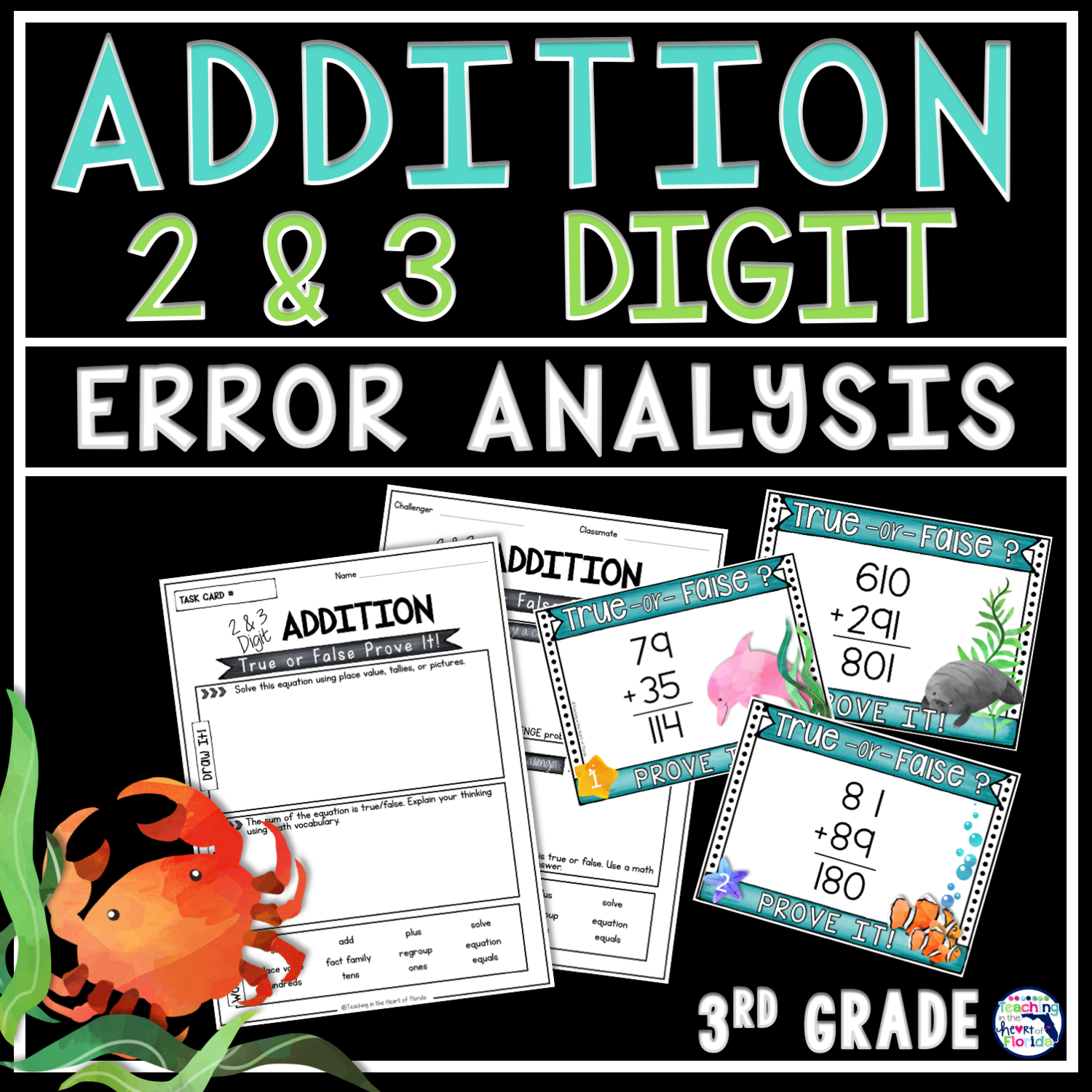 Grab this 2 & 3 Digit Addition Error Analysis task card set for back to school math activities!