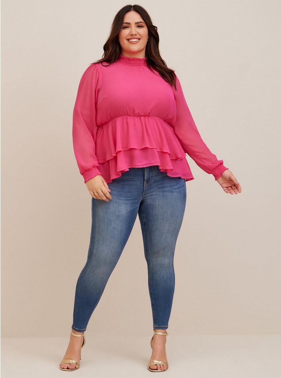 Torrid Crinkle Chiffon Smock Neck Ruffle Tiered Top ($30)
