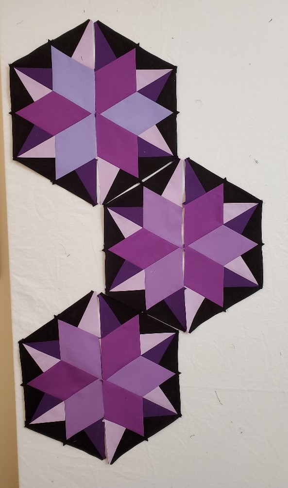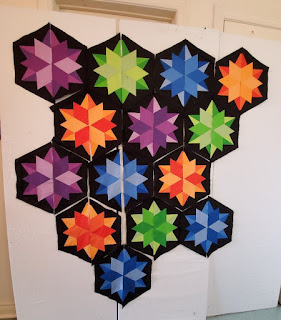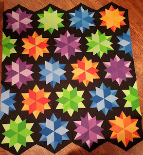 So what did I get done? I decided to work on one of my UFO projects on the 2017 Dirty Dozen (UFO) list. After this project is completed, there are only TWO projects left on that list. I'm GOING TO GET THEM BOTH FINISHED by the end of this year. This project is the Night Sky quilt by Jaybird Quilts. I started it a while ago, then it got shelved and ended up on that list for 2017. There it has sat. I made a bit of progress from time to time, but now it's time to get that thing done!!! It's also my UFO homework for this month so I have to get it done or I cough up $10 and we're not letting that happen.