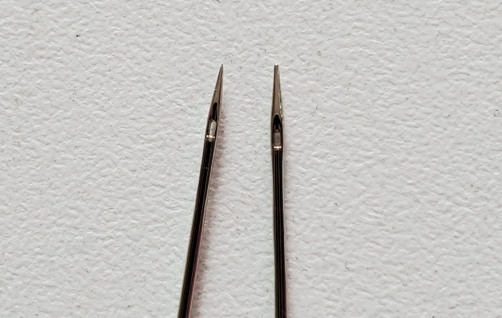 So I have to tell you something about needles. When I started sewing the other day, I had put in a new needle. I could hear it punching. I had a better look and the point of the needle was BLUNT. Even in this photo, you can see the difference. That makes a HUGE difference when you are sewing. If you hear that - STOP and change the needle.