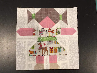 She may even have the binding on by now - I didn't see a picture of that though. Susan got one more block finished from the Vintage Christmas book. This is the Dolly block.