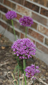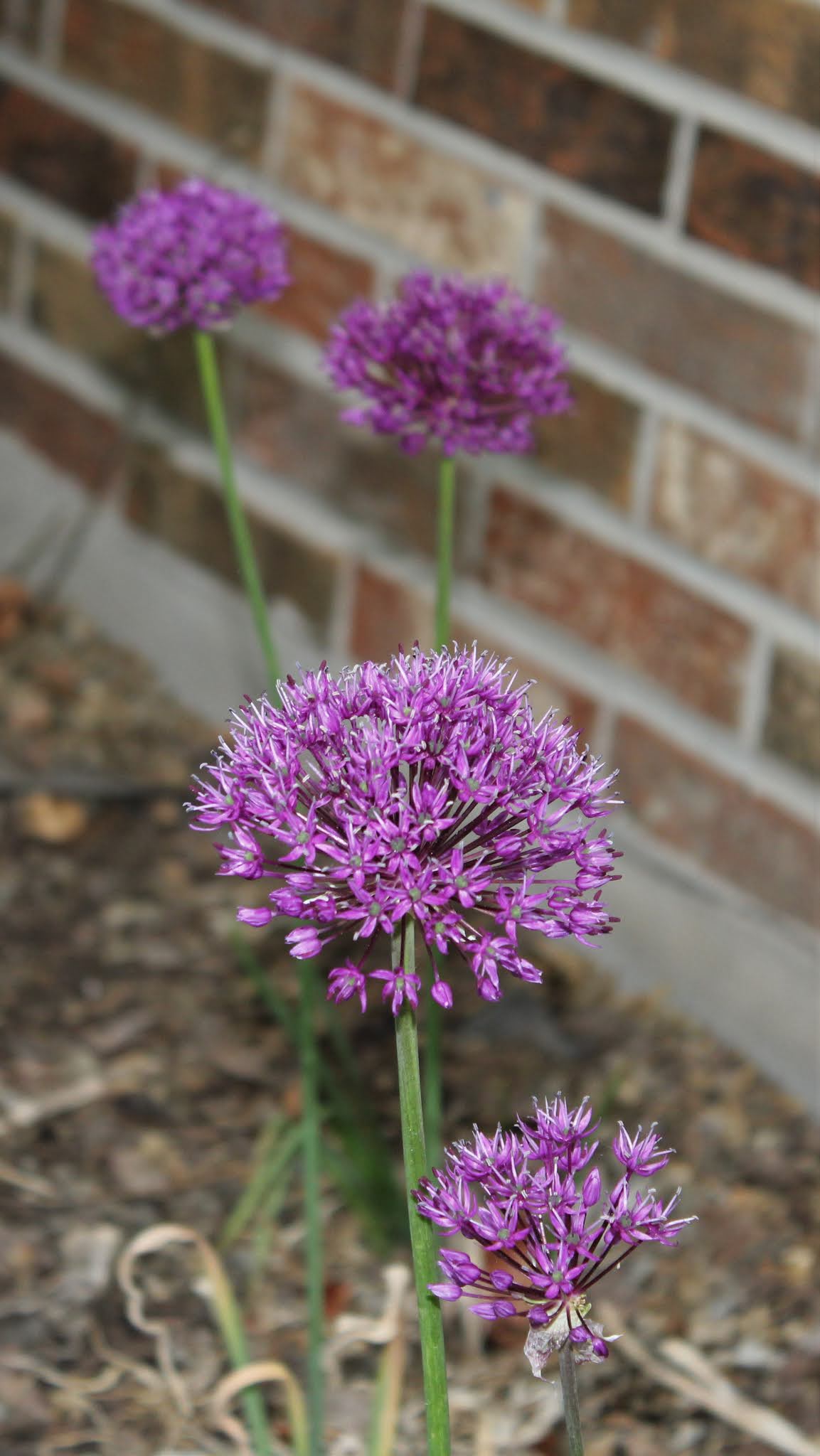 The allium are blooming in front.  They're a member of the onion family but I've never been brave enough to try tasting them.  Chive blossoms look like this and they taste like super-chives so I imagine that the flowers taste like onions.  I should look that up.