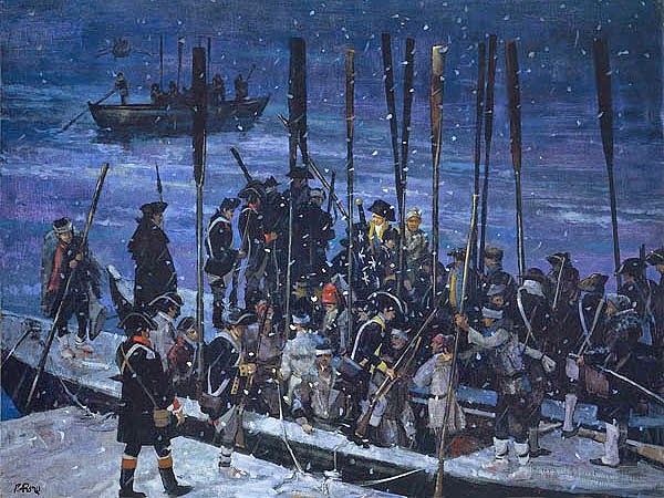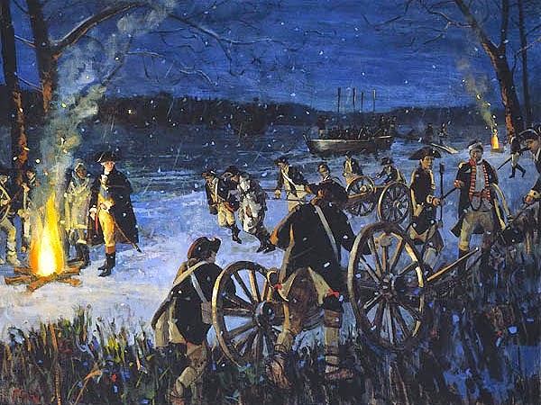 Christmas morning of 1776 in the Delaware River Valley was overcast, with temperatures well below freezing in a soft northeast wind. After a meager breakfast, the foot soldiers of the Continental army were told there would be no drilling, but were issued fresh flints for their muskets, and told to pack three days rations. After almost a year of service they knew what this meant. The few who had paper, composed letters to loved ones at home. Most spent the morning struggling to repair their clothing, tying rags about their disintegrating shoes, fashioning their new blankets into repairs for overcoats and pants and gloves. In those hours, even the most fanatical must have wondered what the hell they were doing, suffering for a commander who had so far had brought them nothing but defeat, retreat and misery.