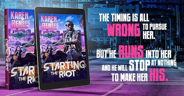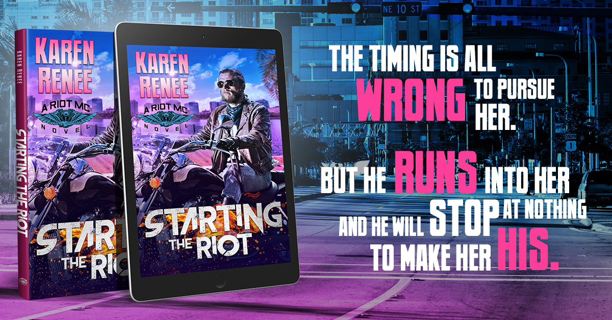 Karen Renee is the author of the Riot MC Series. She has wanted to be a writer from a very early age, and she’s finally bringing that dream to life. She has worked in advertising, banking, and local television media research. She is a proud wife and mother, and a Jacksonville native. When she’s not at the soccer field or cooking, you can find her at her local library, the grocery store, in her car jamming out to some tunes, or hibernating while she writes and/or reads books.