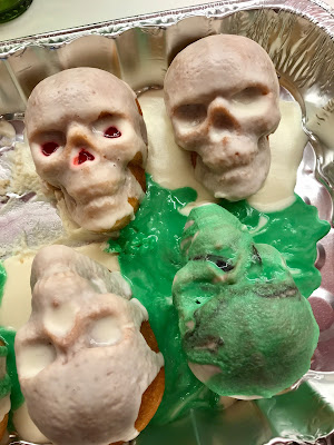 When I got to work, my vegan co-worker Lily had made Vegan Vanilla Banana Skull Cakes! I chopped off about a third of one, and they were really good.